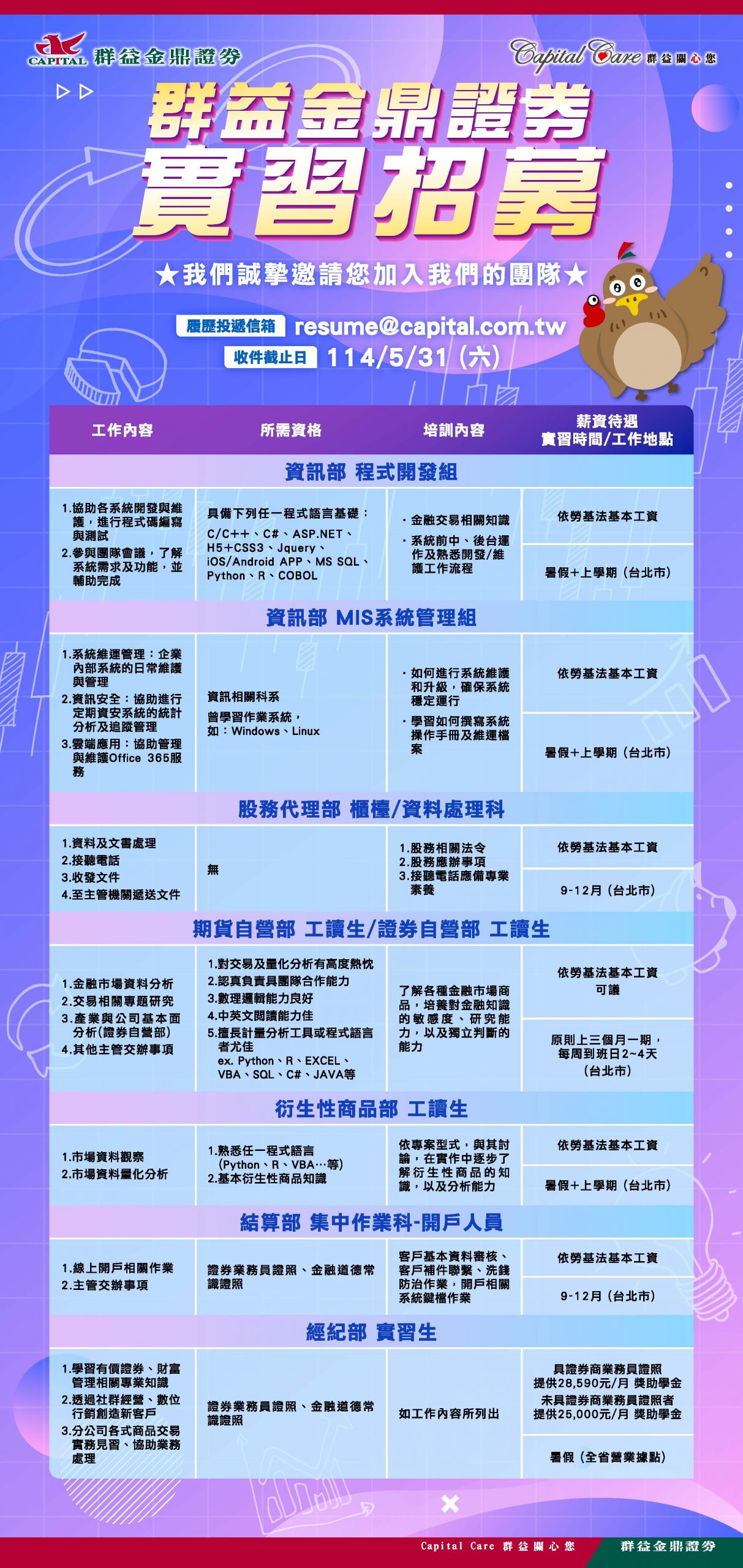 ■ 申請方式:5/31(六)前,繳交履歷與自傳至 resume@capital.com.tw