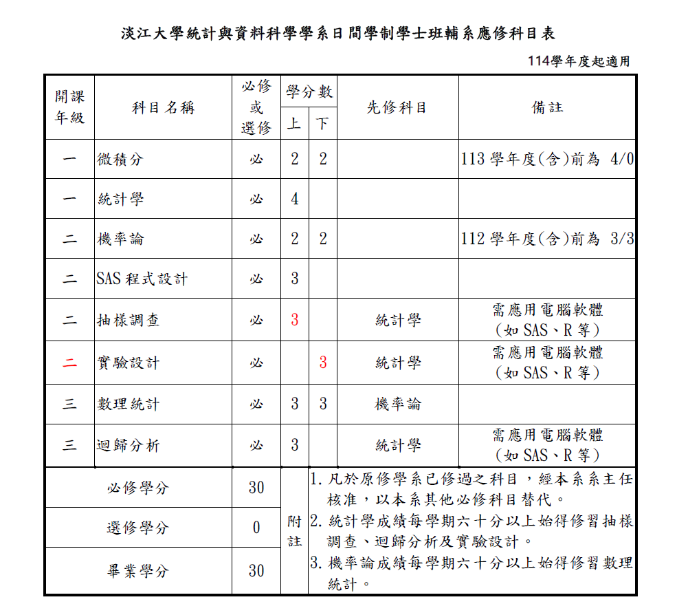 第二主修科目表