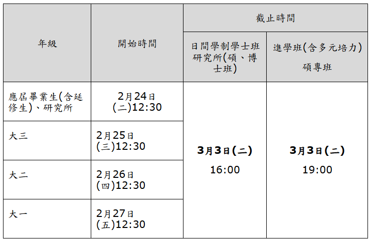(二)系統開放日期:2月24日(二)至3月3日(二),依年級開放。